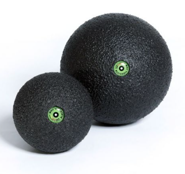 Plat liggend op Trigger point balletje of rechtop staand drukkend tegen een muur.