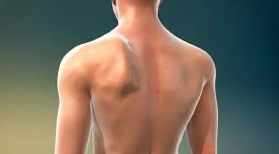 Ruglig en druk geven met wijsvinger + middelvinger op de spier.