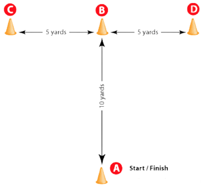 17. Welke is de maximale afstand tussen de lijnen tijdens de shoulder-speed test?