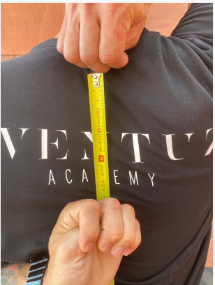 15. Welke afstand moet de klant tijdens de shoulder-mobility test bereiken om veilig kracht te kunnen zetten op de schouders?